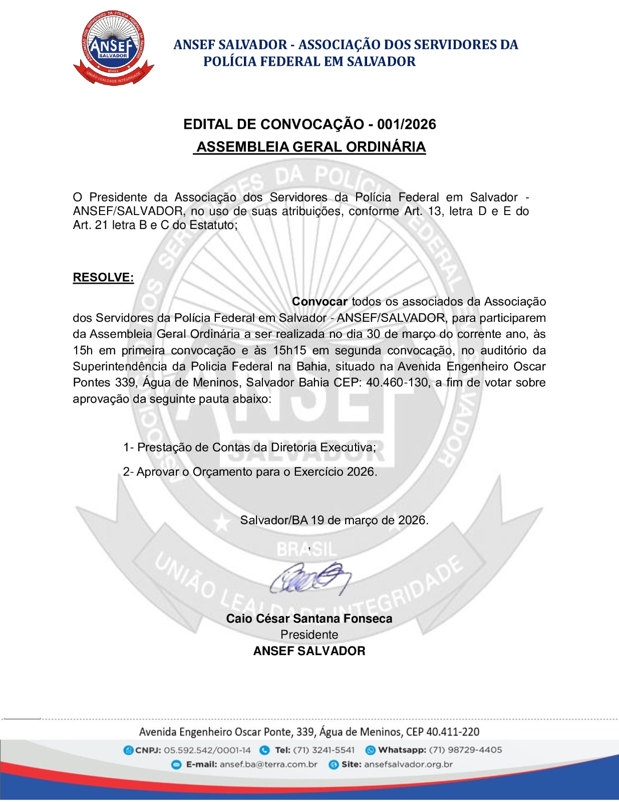 EDITAL DE CONVOCAÇÃO 001-2026